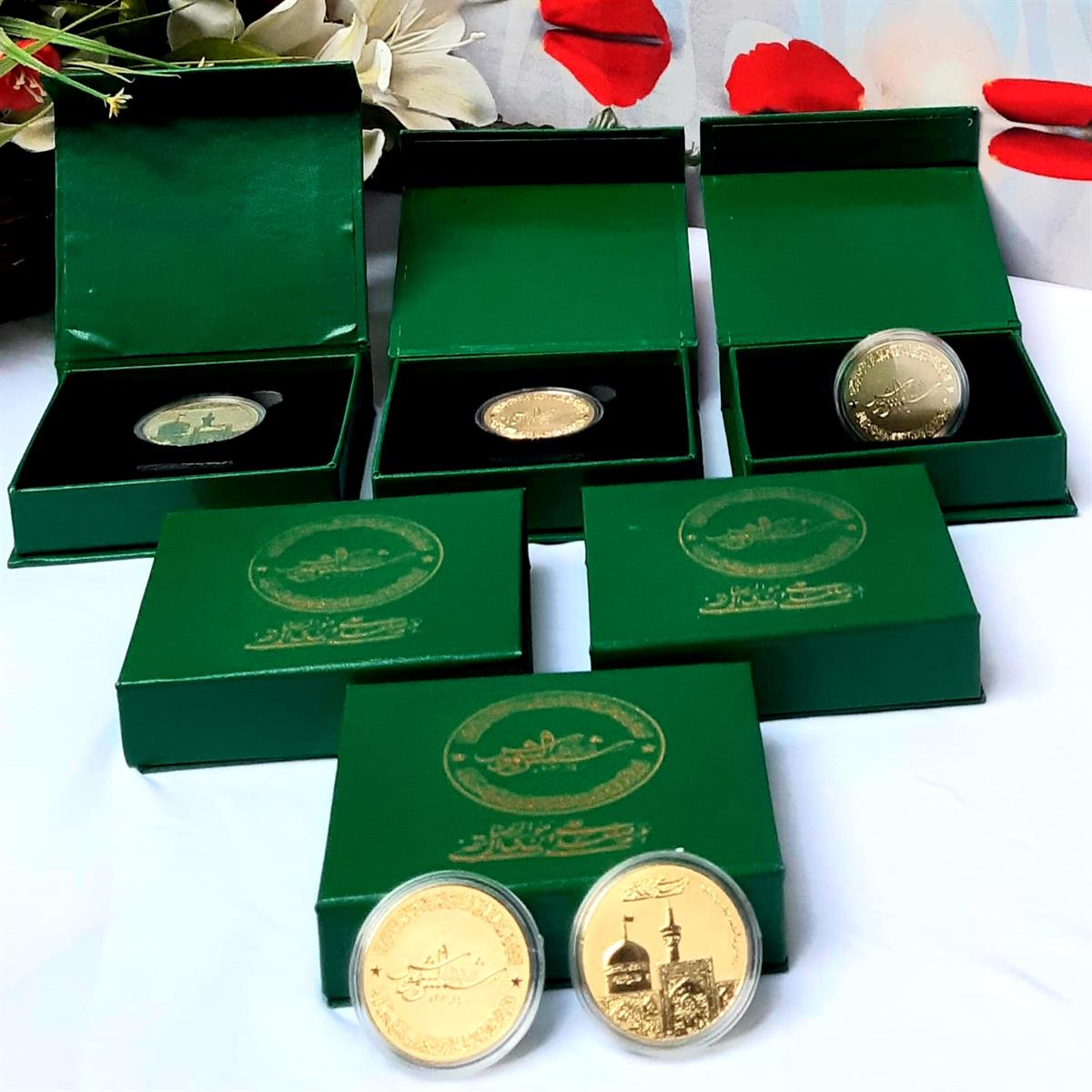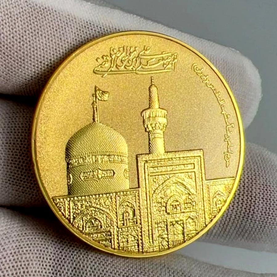 🎖️سکہ مشہدی گولڈ پلیٹڈ، Imam #Zamin 💖سکہ امام رضا علیہ السلام 🏮ضریح مولا رضا علیہ سے مس شدہ کپڑے کے ساتھ 🧭تھری ڈی ایفکٹ کے ساتھ 🪙 فرنٹ روضہ امام علی ابن موسیٰ الرضا علیہ السلام ، بیک انعام یافتہ خطاطی، لقب مولا شمس الشموس ✅ عالم اسلام کا پہلا فراسٹڈ ایفکٹ سکہ 🪙 سائز : 4cm 🪙 وزن : 30 گرام ❤️ عقیدت مندوں کا انتخاب With Beautiful velvet box